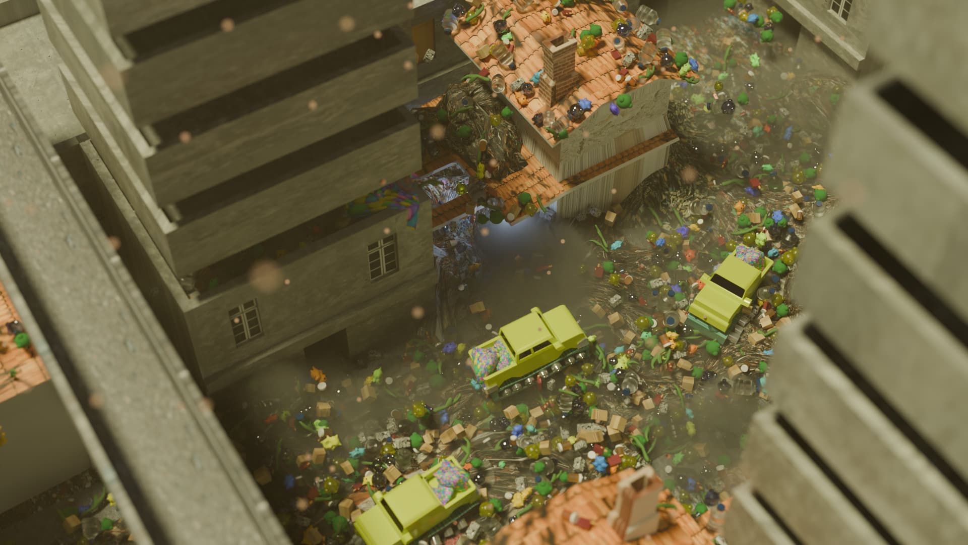 As hoarding becomes the norm, new industries form to relieve people of their excess. Private companies build disposal chutes,