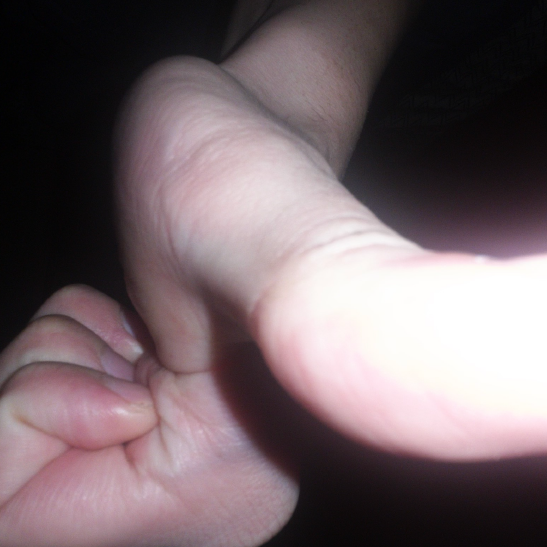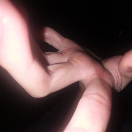 through the Hold-Me's casted body are soldered to four buttons: two embedded in each thumb, one sticking out