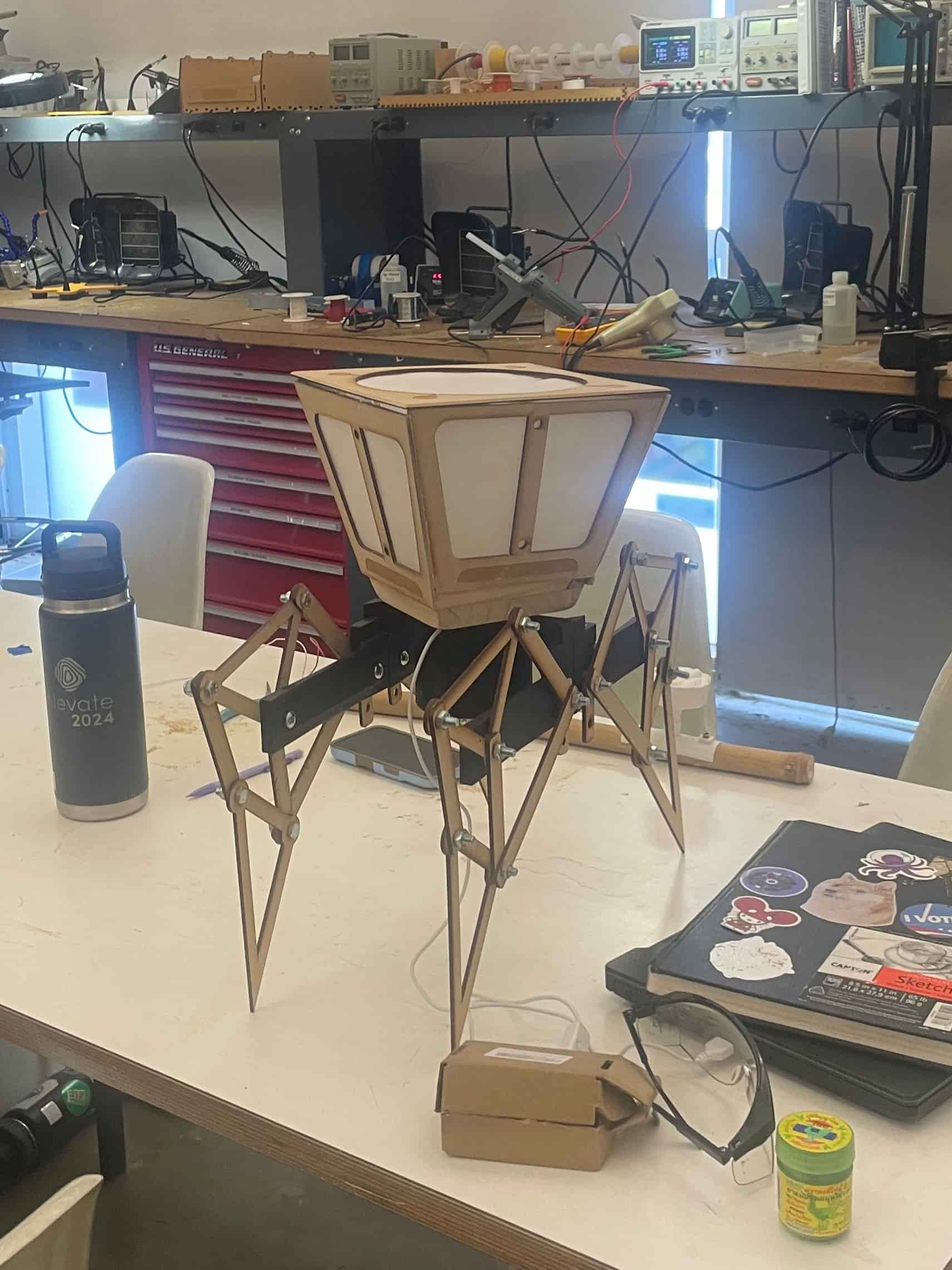 Built with woodworking, lasercutting, and 3D printing.
